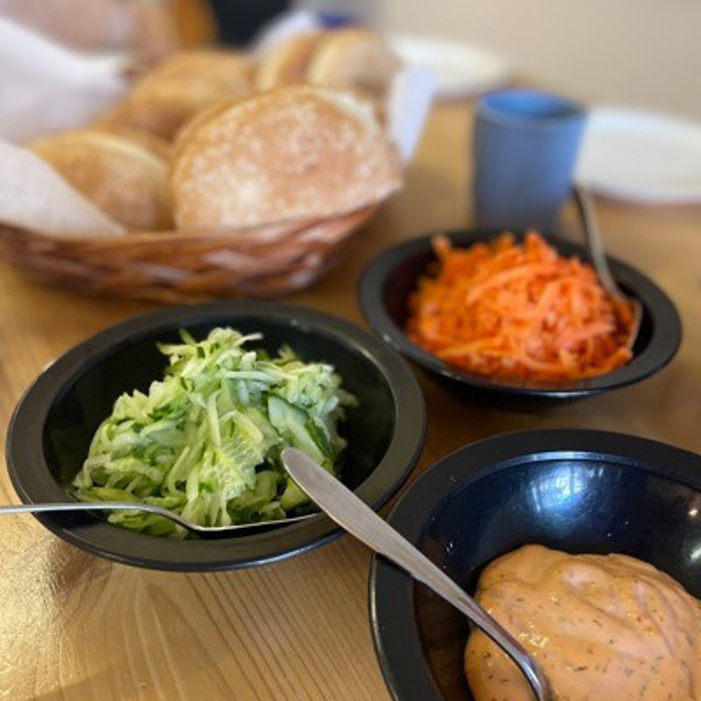 - Vi tilbyr et varmt måltid i uka og det er en meny som rullerer over fem uker. I tillegg til dette har vi en fast dag i uka med havregrøt. Ut over dette tilbyr vi brød, rundstykker, knekkebrød med diverse pålegg og grønnsaker til.
